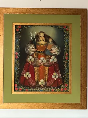 Quadro muler com criança e flores na mao