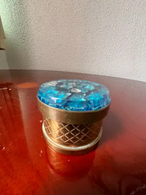 Caixa de jóias decorativa com metal com tampa de pedra azul