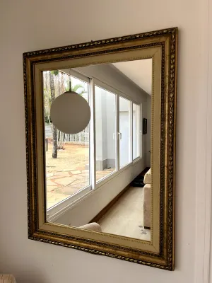 ESPELHO GRANDE COM MOLDURA DOURADA