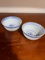 Conjunto de 2 tigelas em porcelana, acabamento branco com delicado desenho azul e padrão de bolinhas. Ideal para servir sobremesas, petiscos ou acompanhamentos com muito estilo. Duráveis, fáceis de lavar e ideais para uso diário ou para decorar a mesa. Uma peça clássica que combina com qualquer jogo americano e é presente perfeito para quem ama porcelana artesanal.