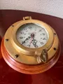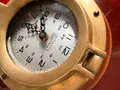 Relógio de parede vintage em metal com acabamento dourado, estilo náutico. Peça única que agrega charme retrô a qualquer ambiente, da sala ao escritório. Numerais grandes e ponteiros trabalhados oferecem leitura rápida, enquanto o acabamento envelhecido confere elegância rústica. Ideal para quem busca decoração marcante, estilo industrial ou marítimo. Uma peça de personalidade para sua decoração.