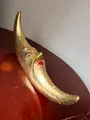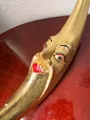 Peça decorativa artesanal no formato do sol dourado com rosto. Acabamento em tinta e verniz que realça o brilho e o estilo vintage. Perfeita para estante, mesa de centro ou separação de ambientes, trazendo personalidade sem ocupar muito espaço. Leve e resistente, é ótima como presente criativo para quem aprecia peças únicas e cheias de charme.