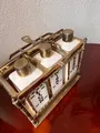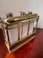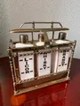Porta bebidas com base metálica e 3 garrafas de vidro