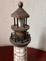 Peça decorativa em madeira com estilo náutico: farol em acabamento rústico, ideal para sala, varanda ou escritório. Sua pintura envelhecida em tons de branco e marrom realça um visual vintage e elegante. Destaque para detalhes e base firme que garantem estabilidade. Perfeito como presente ou toque especial em estante, criado para fãs de decoração artesanal.