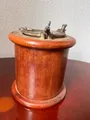 Peça decorativa vintage em madeira maciça com acabamento acetinado e detalhes de metal. Este item único acrescenta um toque clássico a qualquer ambiente, funcionando como porta-objetos, porta-lápis ou suporte decorativo para velas. Feita com materiais de qualidade, oferece durabilidade e charme histórico. Ideal para mesas de escritório, estantes e salas de estar, combinando com estilos retrô e contemporâneos.