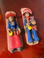Figura decorativa artesanal em barro, representando Lampião e Maria Bonita com toque rústico. Peça única, pintada à mão com acabamento vibrante que traz personalidade e charme a qualquer ambiente. Base de madeira estável para prateleira ou mesa, ideal para sala, escritório ou ocasião especial. Durável, fácil de limpar e perfeita para colecionadores de arte popular e presentes criativos.