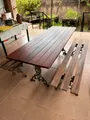 Mesa de madeira com 2 bancos