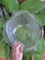 Tigela de vidro decorativa com borda ondulada, feita em vidro transparente de alta qualidade. Brilho elegante, design atemporal e fácil limpeza.