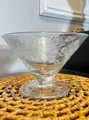 Taça de sobremesa em vidro com acabamento gravado em padrão floral. Ideal para servir sorvetes, mousses, compotas e frutas.