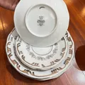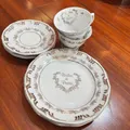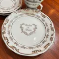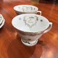 Conjunto de xícaras de chá 12pcs em porcelana branca com acabamento sofisticado e motivo Bodas de Prata.