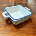Perfeito para porções individuais, sobremesas ou molhos. Acabamento branco com borda esmaltada azul para um toque de estilo na mesa.