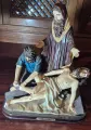 Estátua religiosa decorativa em resina com acabamento artesanal.