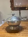 Peça em prata antiga com acabamento refinado que agrega sofisticação ao servir, unindo funcionalidade e valor decorativo para ocasiões especiais.