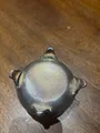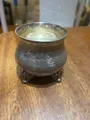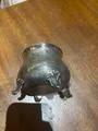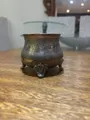 Mate metálico com pedestal tripé e acabamento gravado com motivos de folhas.