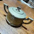Açucareira de prata pertencente ao histórico e famoso Hotel Quitandinha em Petrópolis - RJ. A peça vem com a inicial do hotel gravada em baixo relevo no seu corpo.