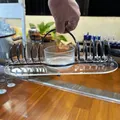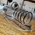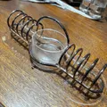 Porta guardanapo com base de vidro e arcos de metal em espiral, design que une funcionalidade e estilo retrô. Mantém os guardanapos sempre à mão, em posição firme, com acabamento resistente e fácil de limpar. Versátil para mesas, bares ou cozinhas; serve para guardanapos de papel ou tecido. Ideal para quem valoriza organização e charme na mesa.
