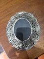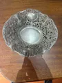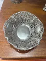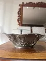 Peça decorativa em metal com arabescos delicados e acabamento envelhecido: