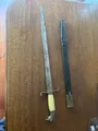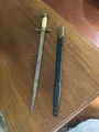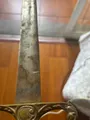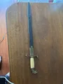 Daga decorativa com bainha em metal envelhecido e cabo trabalhado de marfim, perfeita para coleção: