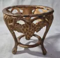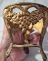 Suporte vintage em bronze, comumente utilizado como base para vasos ou fruteiras, frequentemente decorado com motivos naturais como uvas e folha