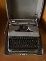 Máquina de escrever Olympia antiga, conservada no estojo original.