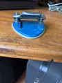 Prensa de bancada compacta em metal, ideal para fixar peças pequenas com firmeza durante usinagem.