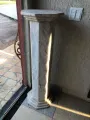 Pedestal de mármore branco com veios discretos, peça decorativa de alta presença para exibir bustos, vasos ou esculturas.