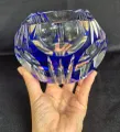 Peça decorativa em cristal azul, com cortes facetados que criam reflexos cintilantes em qualquer iluminação.