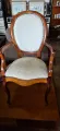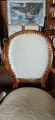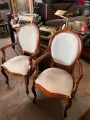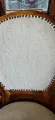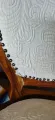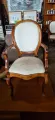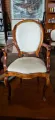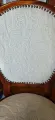 Cadeira estofada de madeira maciça, com assento e encosto em tecido creme com relevo suave. A moldura arredondada e as tachinhas cromadas ao redor do contorno criam um visual vintage elegante, que conversa com ambientes clássicos ou contemporâneos.