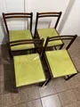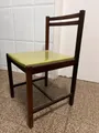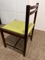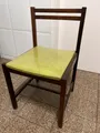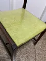 Cadeira Vintage de madeira com assento estofado em tecido verde.