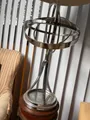 Abajour em metal prata e cupula em metal.