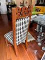 Mesa de jantar clássica com 8 cadeiras em madeira com acabamento polido, linhas elegantes e pés trabalhados.