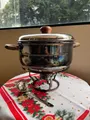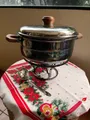 Chafing dish inox para buffet com suporte estável e tampa em aço inox, ideal para manter pratos quentes em eventos, festas e casamentos. Estrutura durável, acabamento polido e fácil de limpar. Mantém comida aquecida por horas com queimador integrado. Perfeito para sopas, molhos, entradas e refeições em grande formato. Design elegante que valoriza qualquer celebração. Acompanha a concha para servir