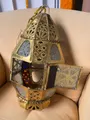 Lanterna decorativa de metal dourado para teto com acabamento envelhecido e painéis recortados que iluminam com charme vintage. Estrutura resistente em metal, gancho para pendurar e base estável. Ideal para sala, varanda ou entrada, criando atmosfera aconchegante com luz suave. Use vela pequena ou lâmpada LED para iluminar com segurança e estilo.