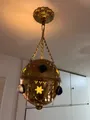 LUMINÁRIA PENDENTE ARTESANAL com corpo em metal envelhecido e globos coloridos. Perfeita para sala, quarto ou corredor, cria iluminação suave e aconchegante, destacando a decoração com toque único. Cada detalhe artesanal realça estilo boêmio/vintage, combinando com ambientes modernos ou rústicos. Ótima opção para quem busca peça decorativa impactante e de qualidade superior.