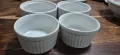 Conjunto de ramequins cerâmicos brancos ideais para porções separadas.