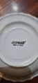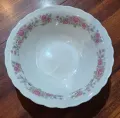 Tigela de porcelana branca com acabamento liso e borda floral em tons de rosa, lilás e verde.