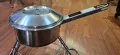 Panela de inox com tampa, perfeita para uso diário na cozinha ou para acampamento.