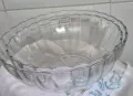 Tigela de vidro transparente com borda ondulada, perfeita para servir sobremesas, saladas, frutas e bolos.