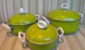 Conjunto de panela decorativa com marcas do tempo.