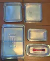 Conjunto de potes transparentes com tampas para armazenar refeições, sobras e ingredientes. Mantém a despensa organizada com praticidade e estilo.