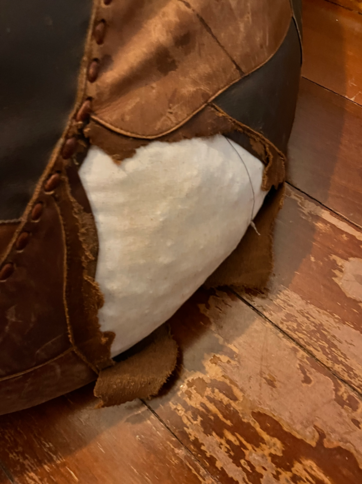 Puff de couro com avarias
