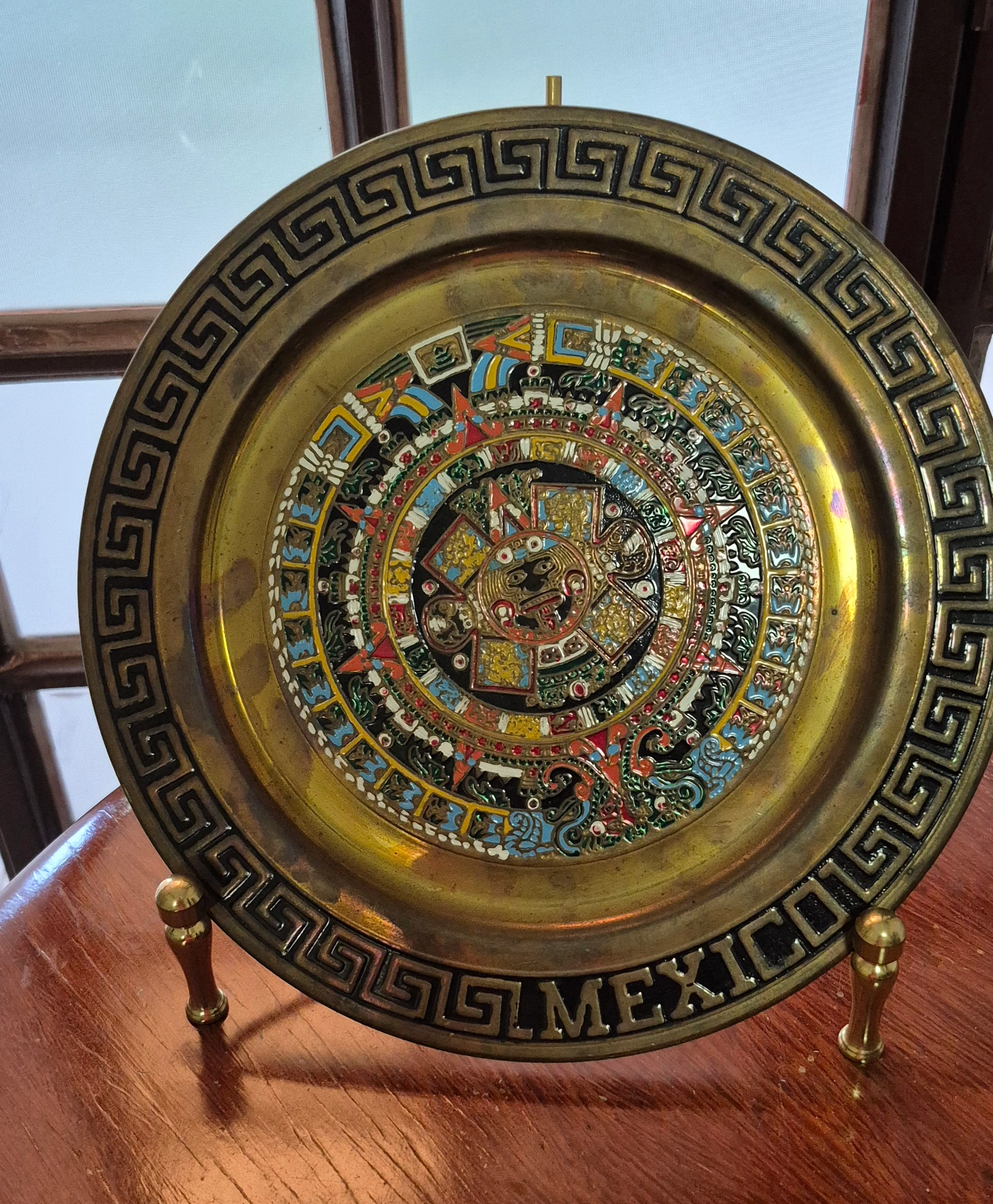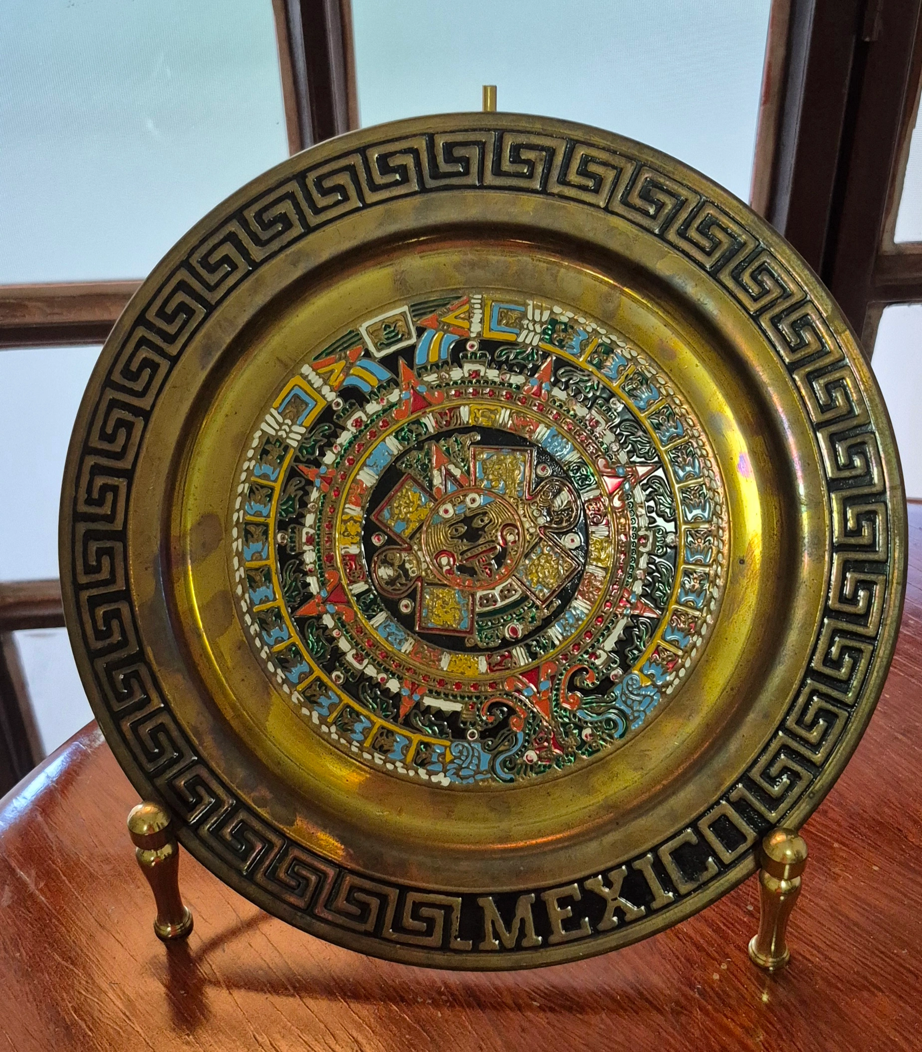 Placa decorativa de latão do Calendário Asteca, também conhecido como Pedra do Sol.