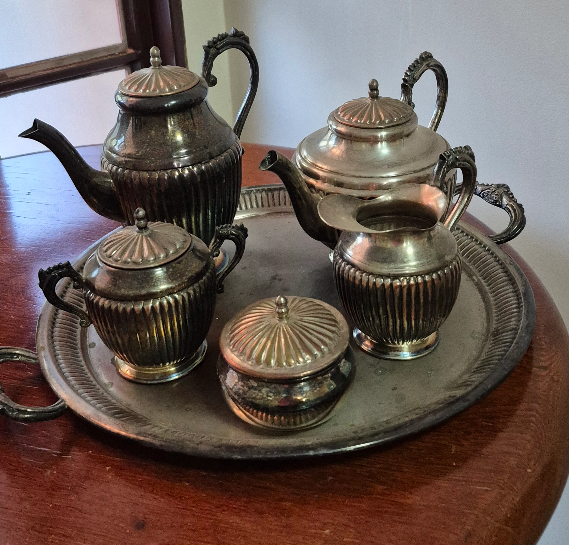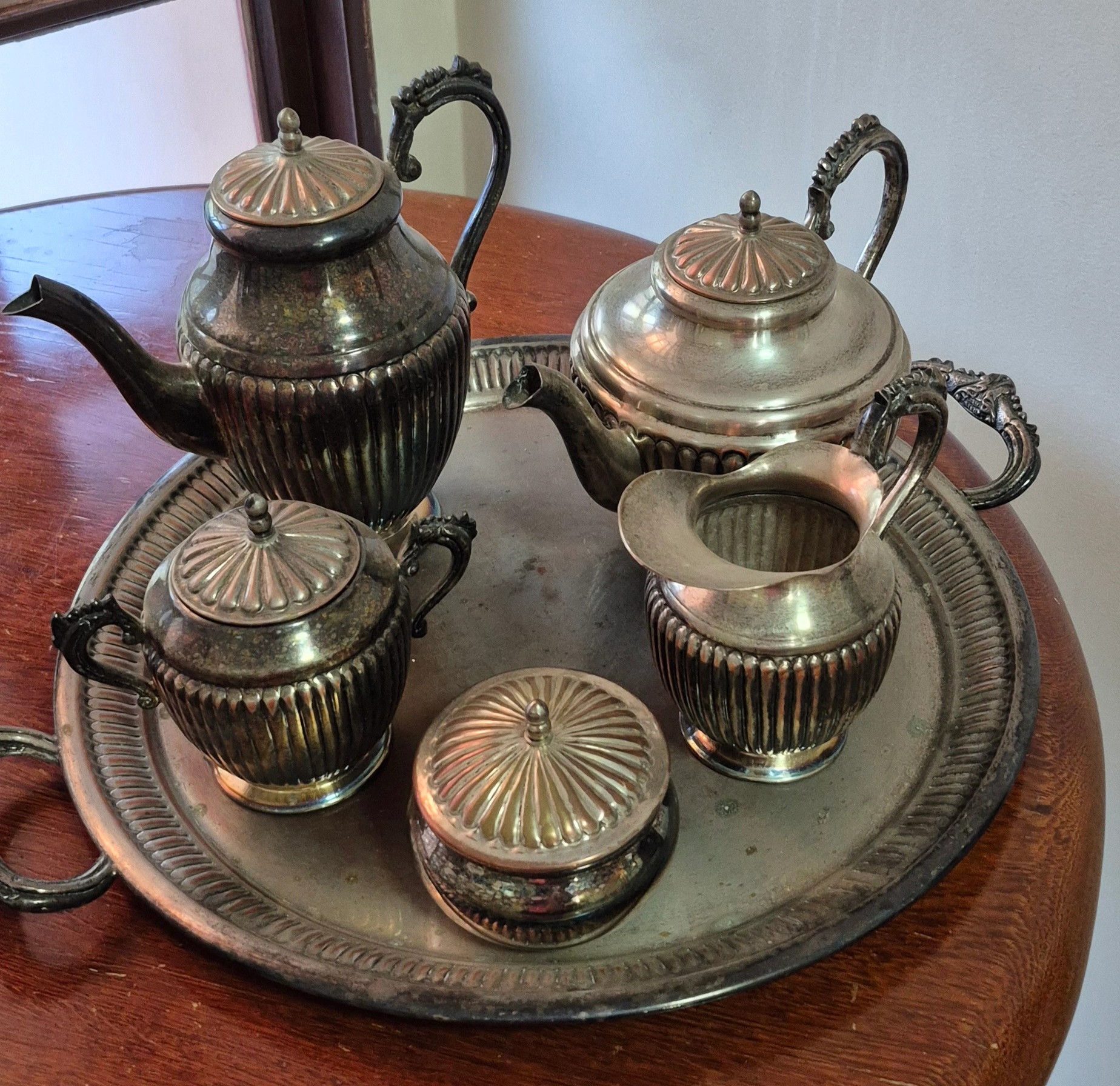 Jogo de chá em metal banhado a prata